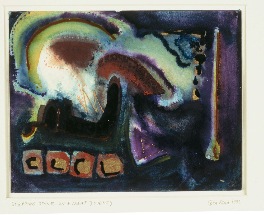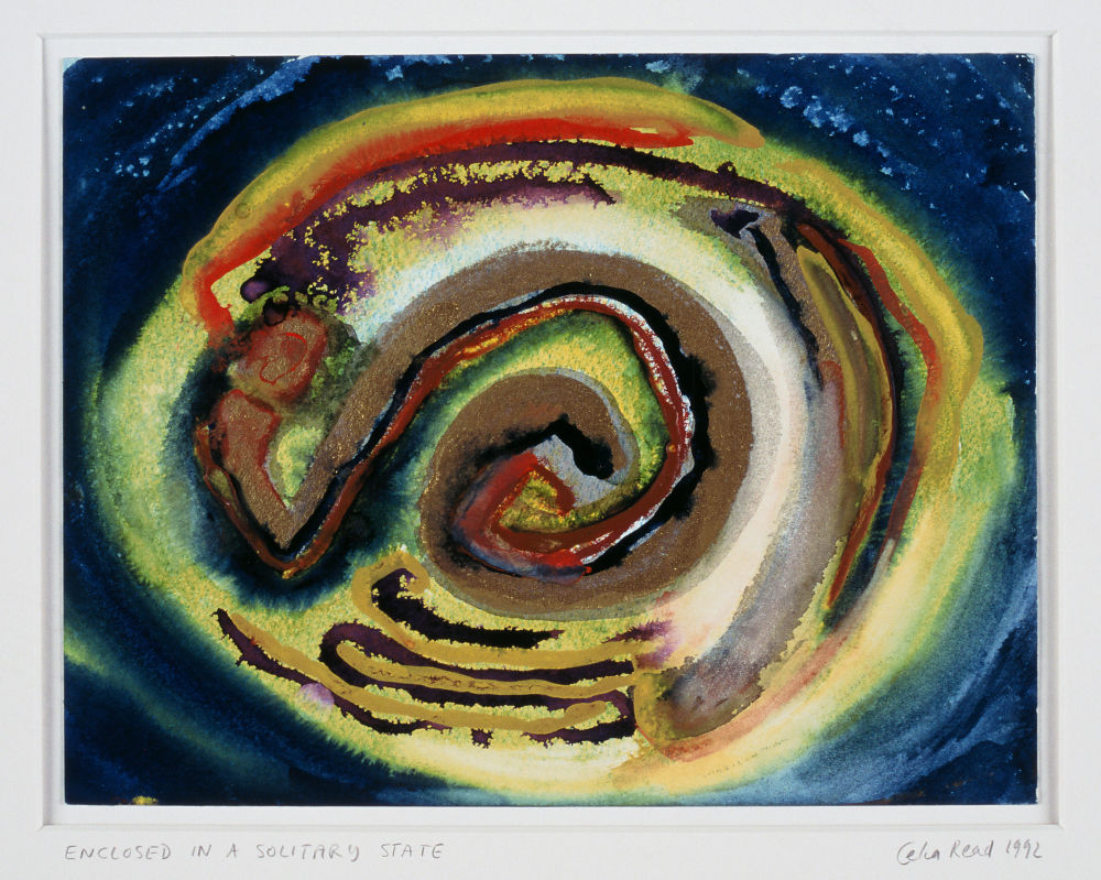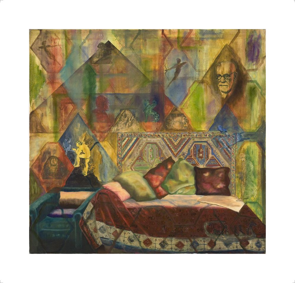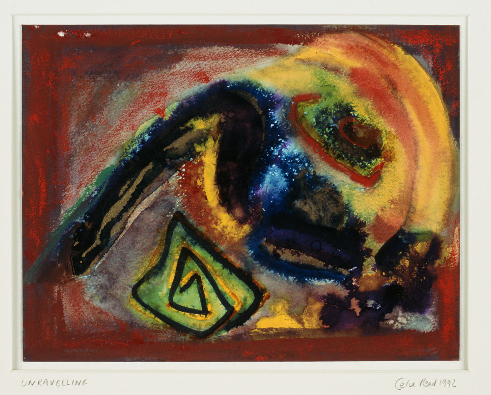 In his review of the exhibition in The Times John Russell-Taylor wrote “Celia Read is a practicing psychoanalytic psychotherapist as well as a painter. Some of the images in her work are developed from objects in Freud’s study, including works from Freud’s own collection, not to mention the famous couch. In this context it is clear also that Read’s painting technique sometimes closely parallels psychoanalytic practice, digging into the elaborately built up surfaces of paint and collage as the analyst explores “layers of buried experience”. The results, unexpectedly, are brilliantly coloured, lyrical and apparently angst–free”.