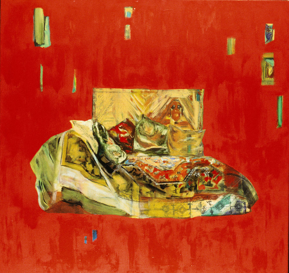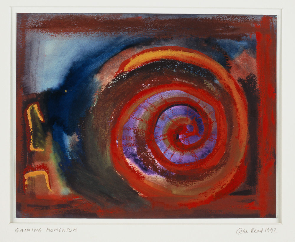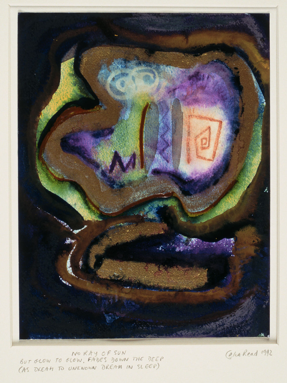 In his review of the exhibition in The Times John Russell-Taylor wrote “Celia Read is a practicing psychoanalytic psychotherapist as well as a painter. Some of the images in her work are developed from objects in Freud’s study, including works from Freud’s own collection, not to mention the famous couch. In this context it is clear also that Read’s painting technique sometimes closely parallels psychoanalytic practice, digging into the elaborately built up surfaces of paint and collage as the analyst explores “layers of buried experience”. The results, unexpectedly, are brilliantly coloured, lyrical and apparently angst–free”.