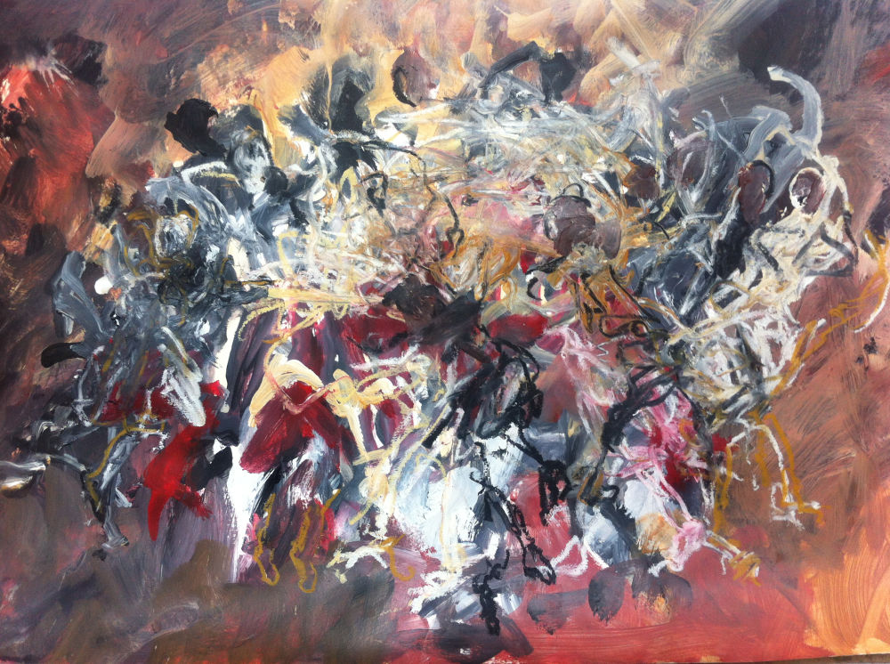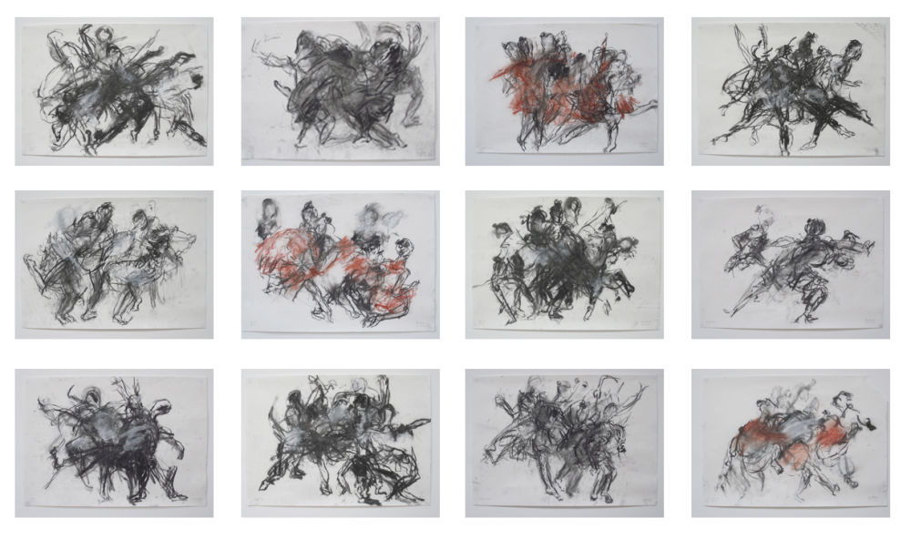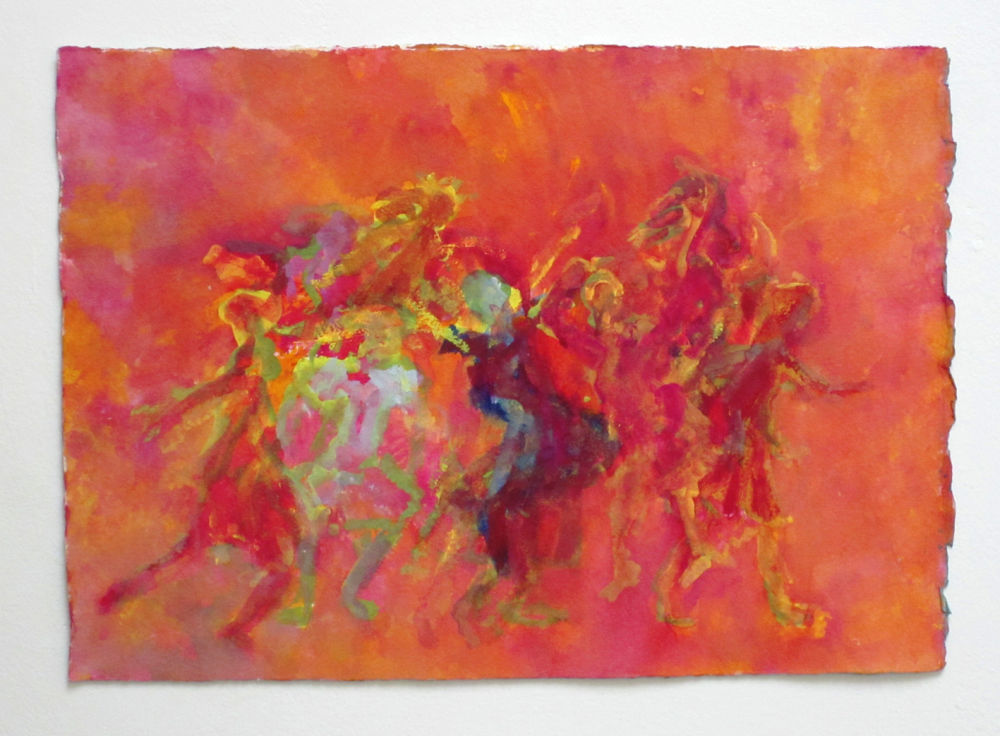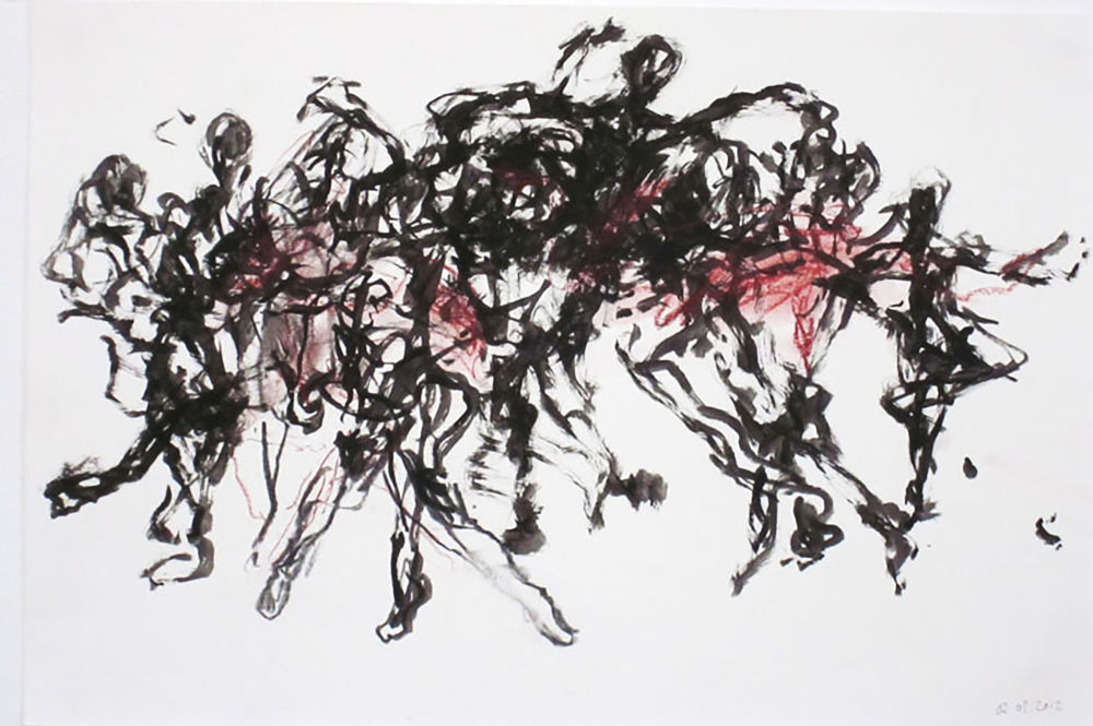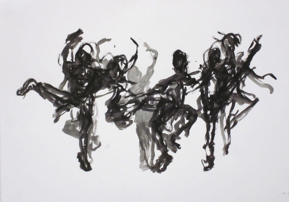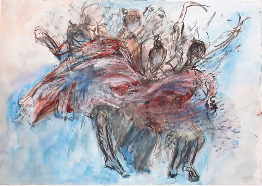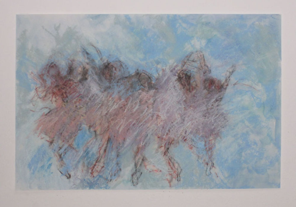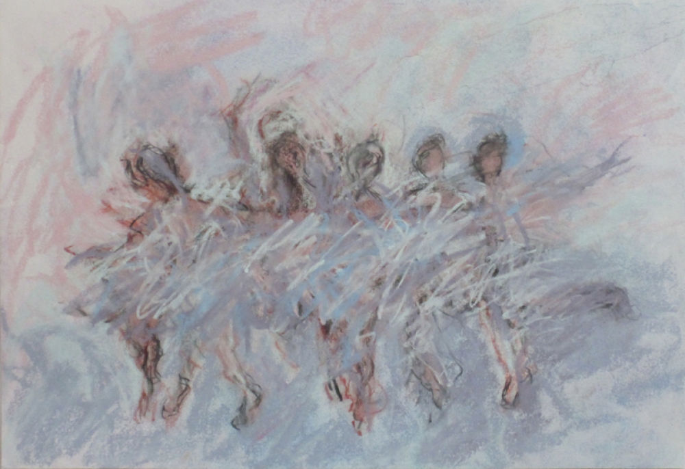 I feel privileged to be a guest in their creative space, drawing spontaneously with both hands with ink, charcoal and conte. While The pastels, paintings and collages are developed in my studio after witnessing dancers in either their morning exercise class, rehearsals or performing a number of different ballets, including ‘Firebird’, ‘The Rite of Spring’,‘Le Jeune Homme et la Mort’ and ‘Lest we Forget’.