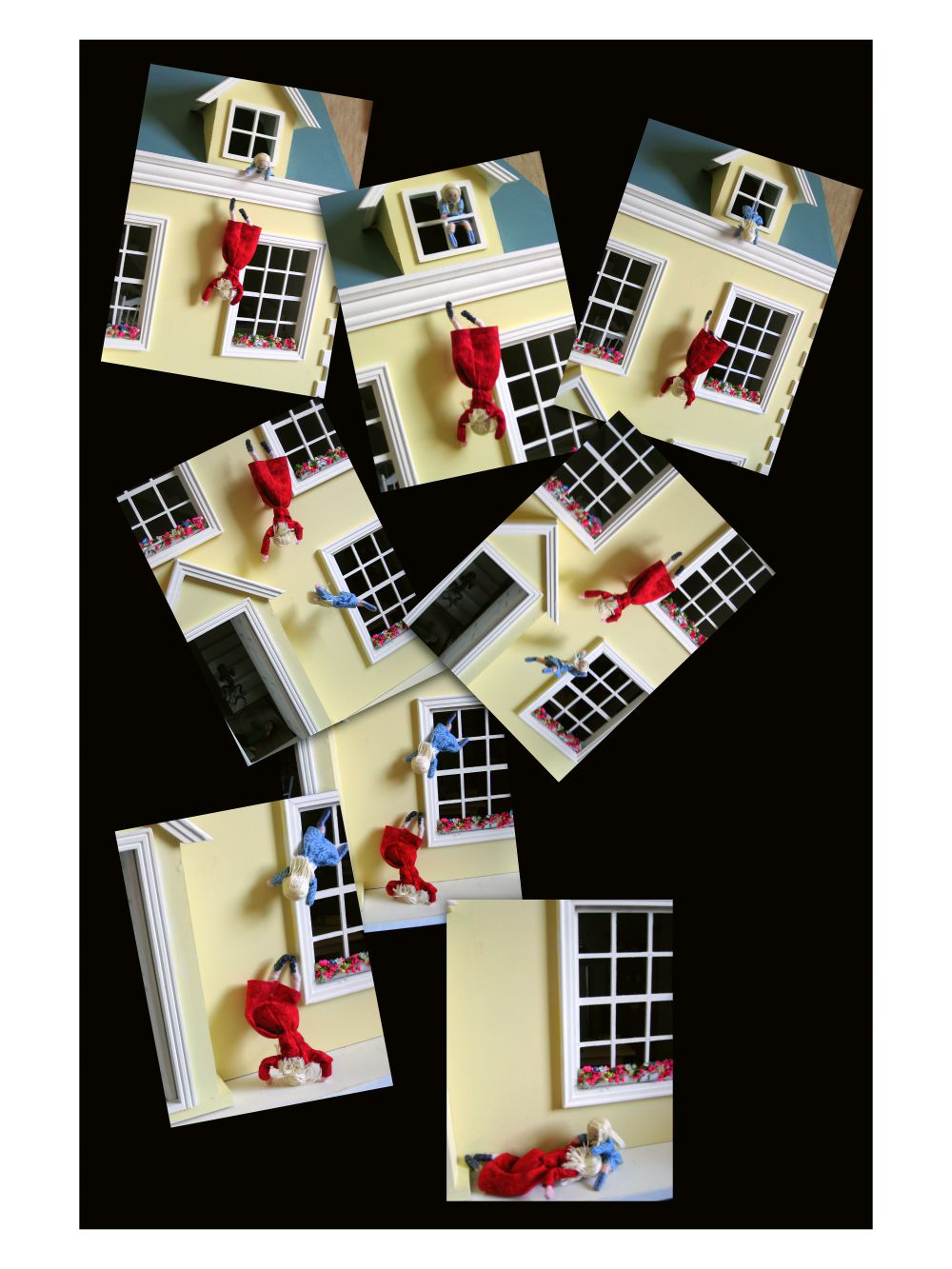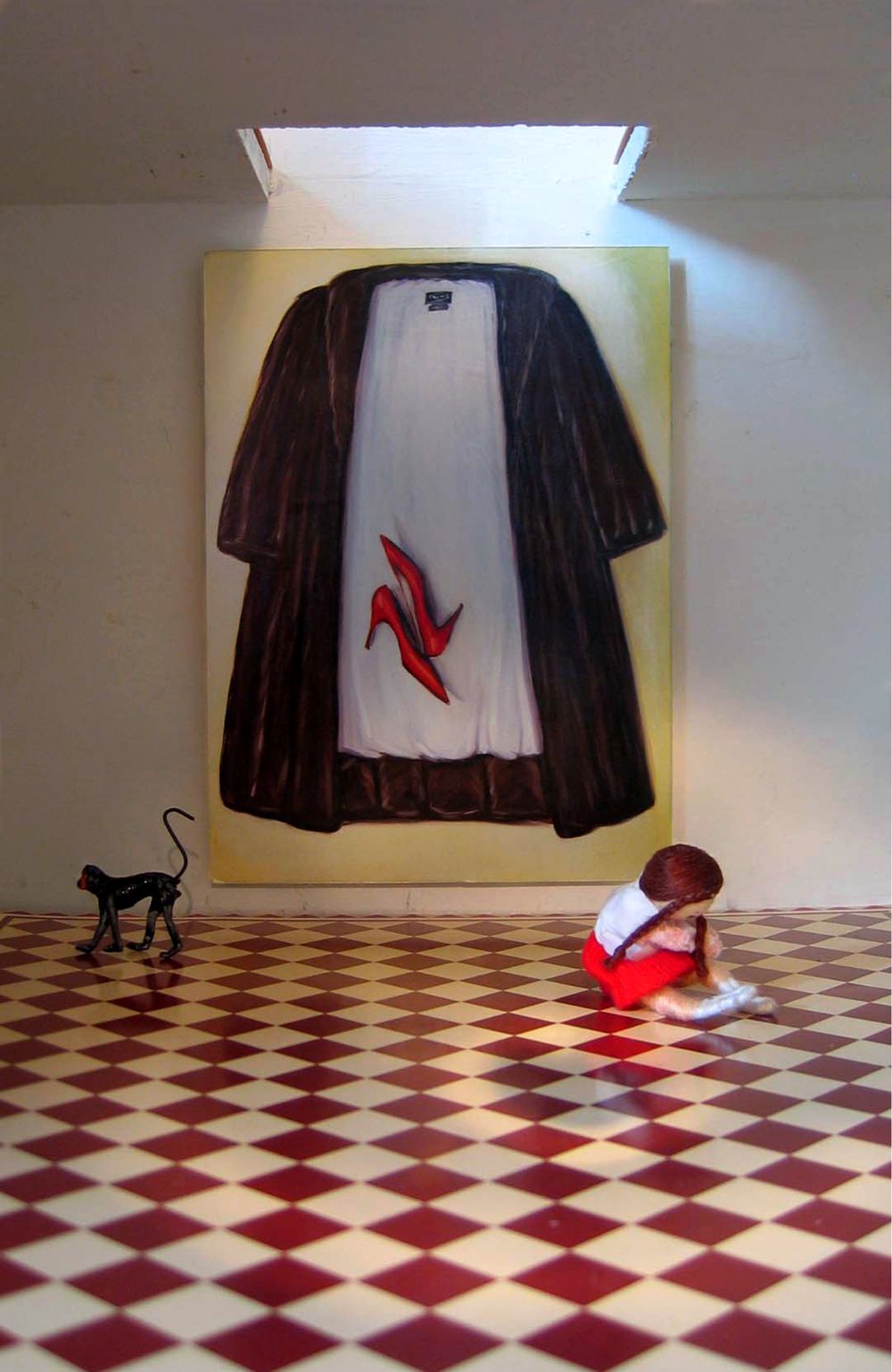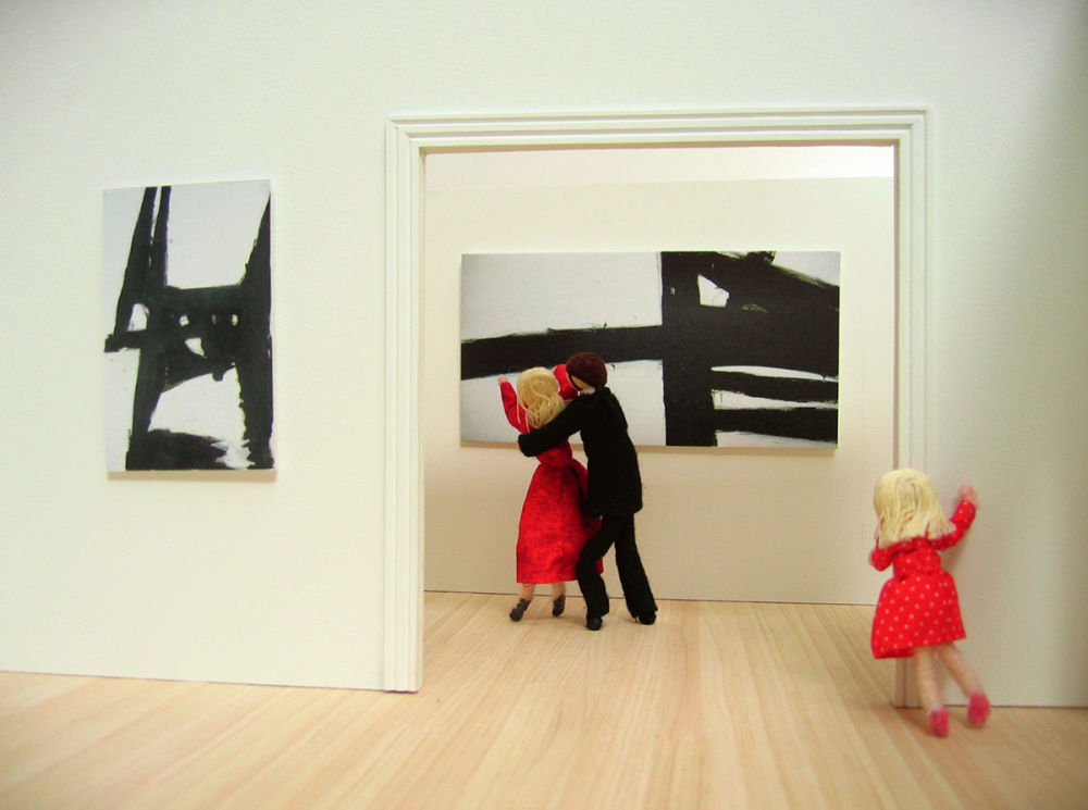 Celia Read’s original and unsettling photographs are theatre pieces, psycho-dramas of childhood staged in a doll’s house where miniature figures with bodies made of pipe cleaners and cloth -- mostly in the shape of mother and daughter-- are discovered in mysterious and menacing scenes set against major works of modern art. The elegant world of adult play contrasts with and comments on the fierce world of child’s play going on around it.